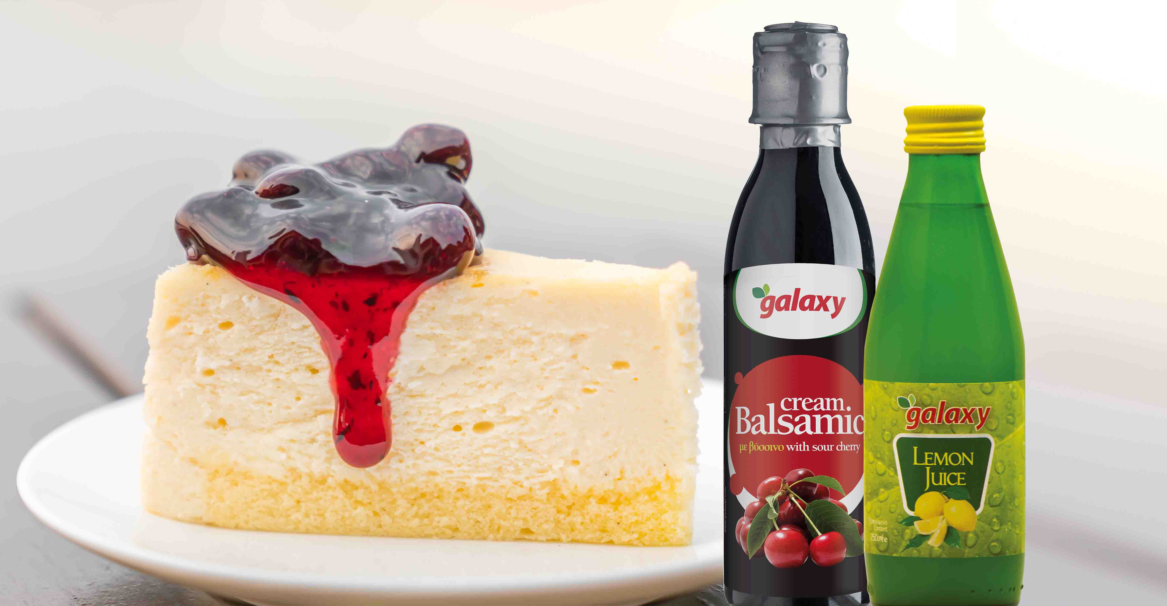 Cheesecake with lemon juice & sour cherry balsamic cream